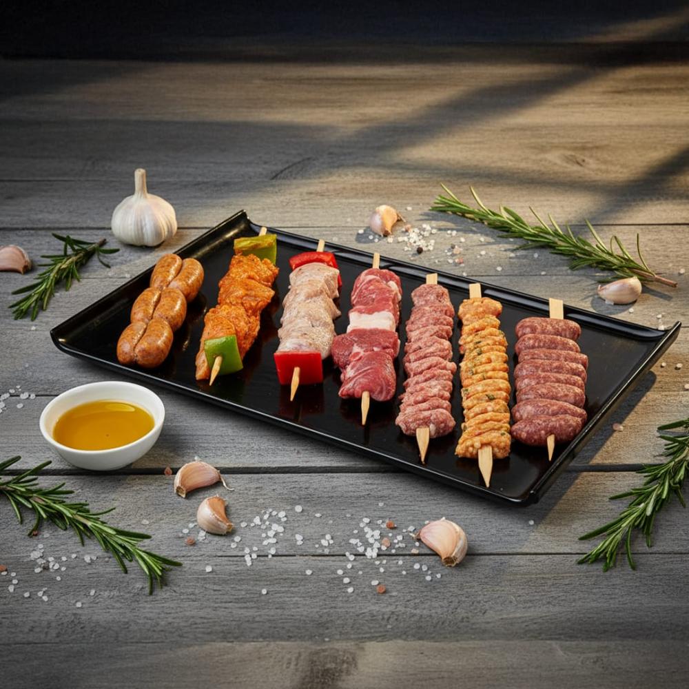 كيلو مشاوي لحم من دار العز هو الخيار الأمثل لمحبي الطعم الأصيل، حيث يضم تشكيلة متنوعة تشمل كباب اللحم الطري، أوصال لحم مشوية بإتقان، برجر لحم فاخر، وكفتة محشوة بالجبن الذائب لتقديم مزيج متكامل من النكهة الغنية والقوام الطري ويتم تحضير كل صنف من لحم الغنم واللحم البلدي المنتقى بعناية، والمتبل بخلطة طبيعية تبرز النكهة وتمنحك تجربة شواء فاخرة تعكس روح المذاق السعودي الأصيل.